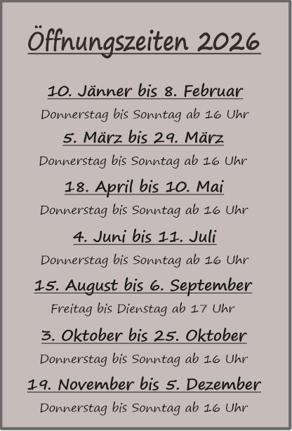 Unsere Ruhetage sind Montag, Dienstag und Mittwoch. An unseren Öffnungstagen, Donnerstag bis Sonntag haben wir ab 16:00 Uhr für Sie geöffnet.